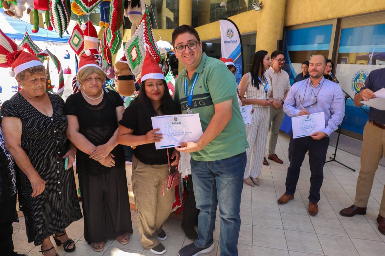 Un grupo de 22 mujeres fueron reconocidas por el trabajo que hay detrás del árbol de Navidad ubicado en el hall de la Municipalidad de Antofagasta y elaborado con la técnica artística japonesa conocida como amigurumi, ícono de esfuerzo y superación, y que como dijo el padre Felipe Berríos, día a día luchan contra la delincuencia, postergación y crimen organizado.