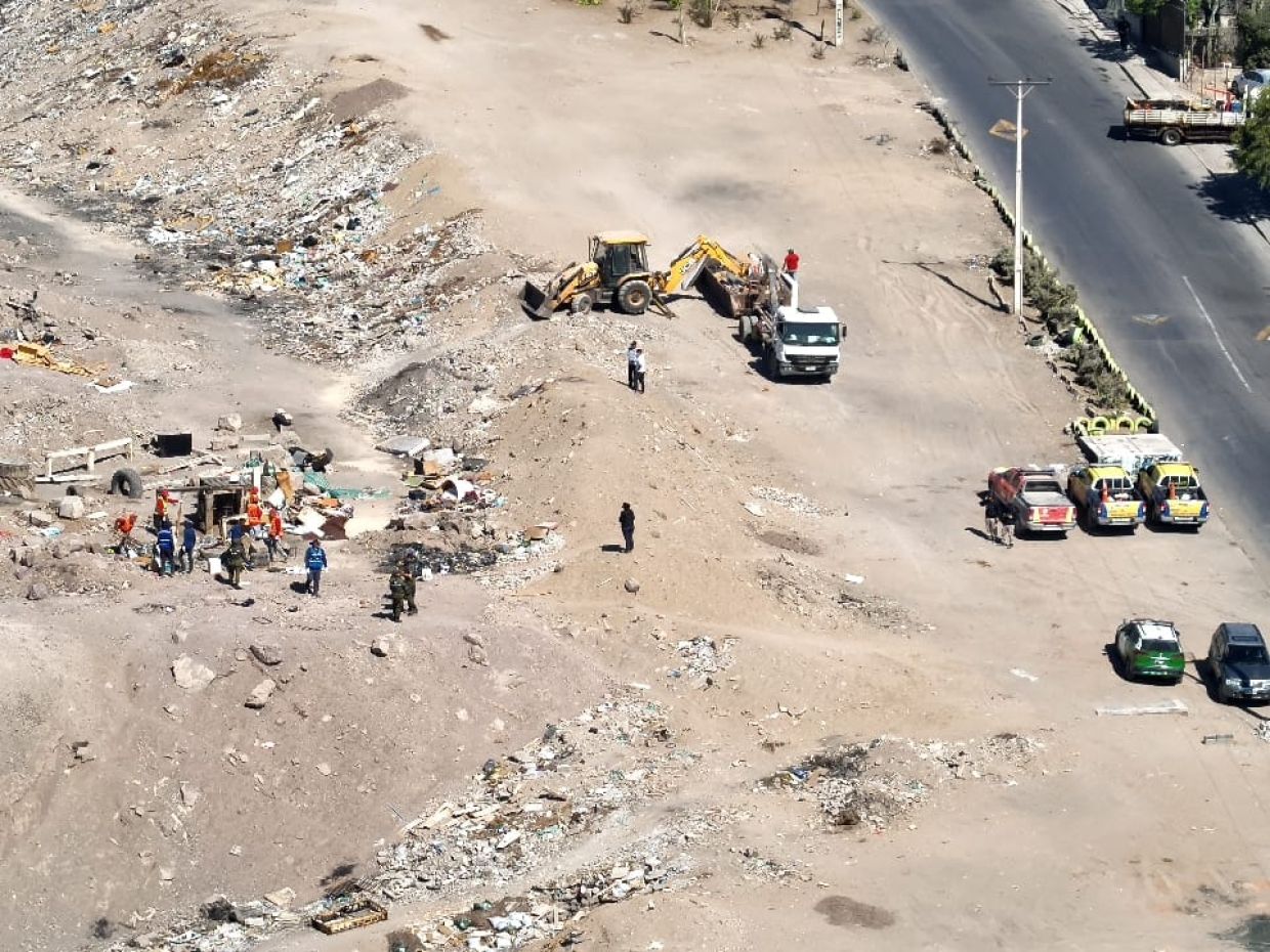 Tras un operativo coordinado por la Dirección de Seguridad Pública de la Municipalidad de Antofagasta, en las inmediaciones del ex vertedero, se procedió al desalojo de personas en situación de calle realizando quema de elementos para la recuperación de metales para su posterior venta.