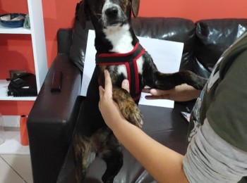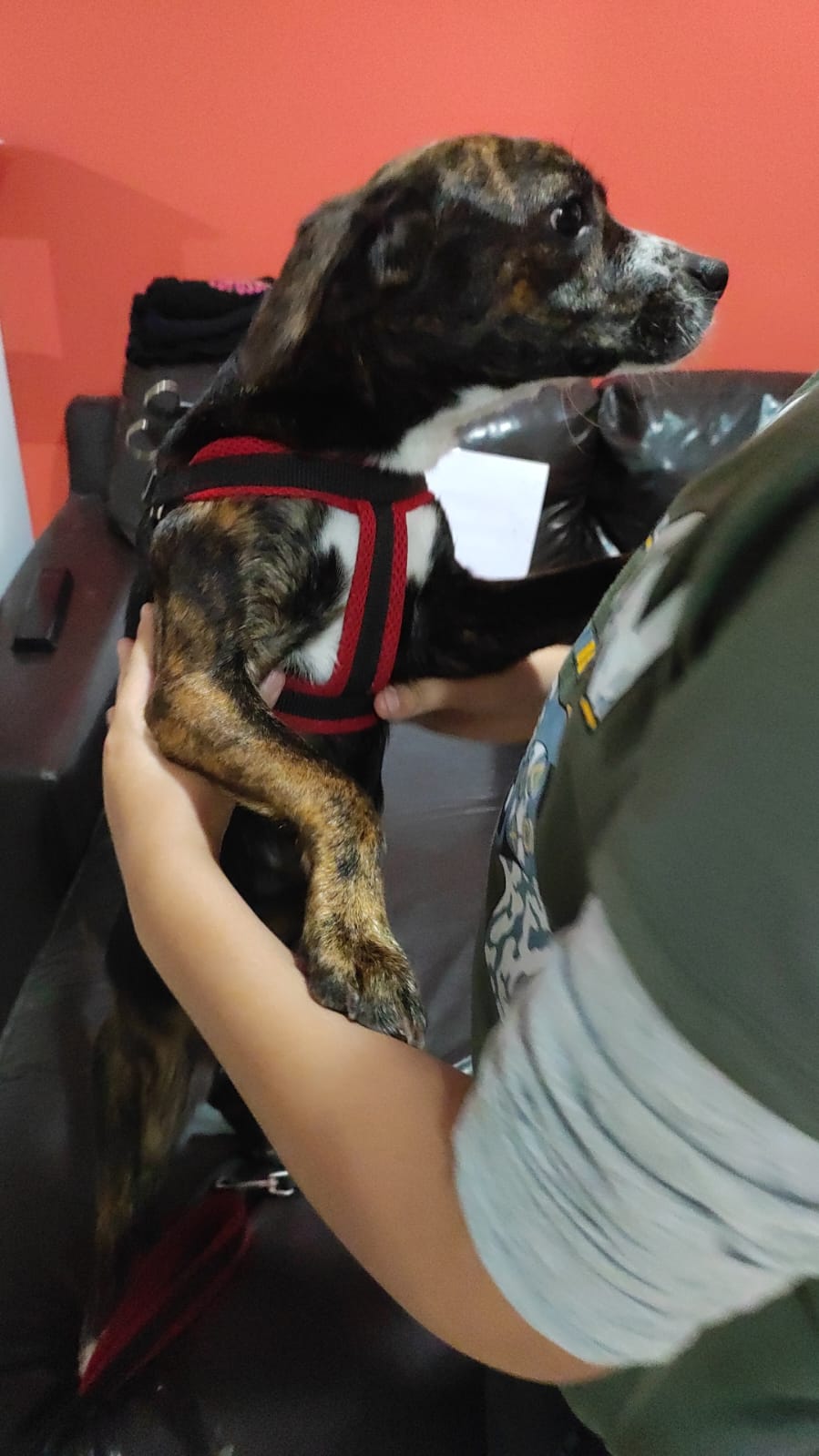 Se encuentra perrita en vía pública nos siguió desde Uribe hasta nuestro hogar Caracoles 3235 A Villa Parinacota por lo cual en estos momentos no podemos tenerla ya que no tenemos espacio.