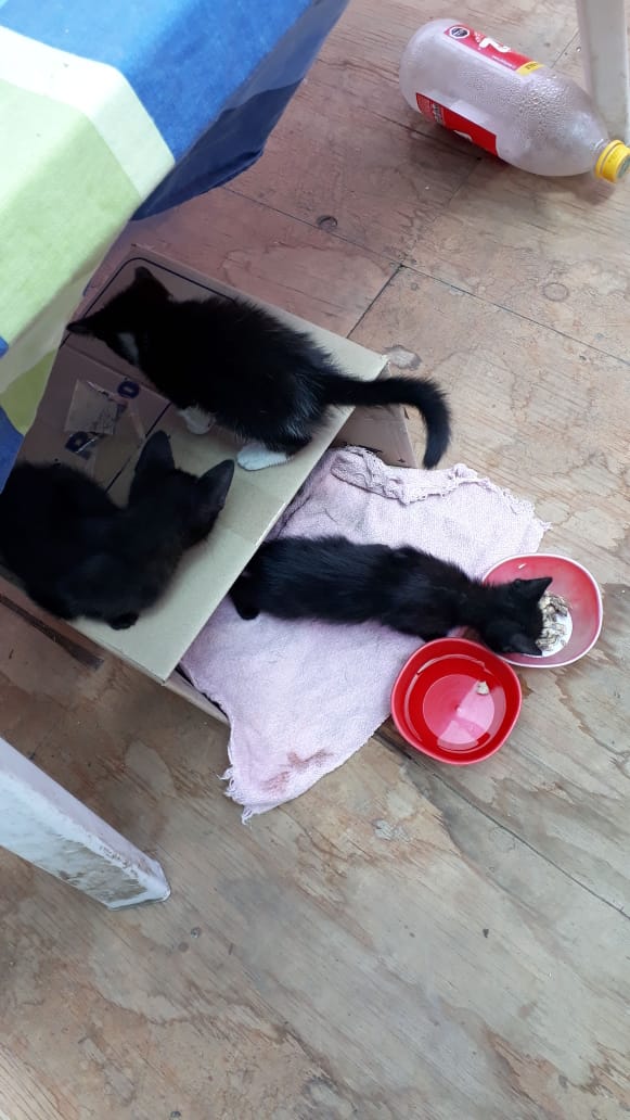URGENTE= EL DIA DE AYER TIRARON EN MI ANTEJARDIN 3 GATITOS PEQUEÑOS. EN MI CASA TENGO DOS PERROS . QUE NO LE GUSTAN LOS GATOS, POR LO QUE TUVE QUE DEJAR LOS GATITOS EN EL TERCER PISO DE MI CASA PARA EVITAR QUE LOS ATACARAN. URGE QUE LOS ADOPTEN.
