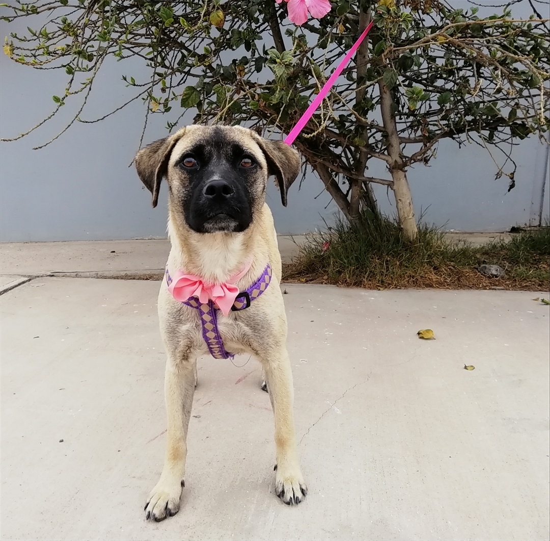 Tres Leches es una perrita muy dulce, tamaño mediano (pesa 13 Kg). Se entrega en adopción con todo al día, lista para que sea parte de un amoroso hogar. Es muy tranquila y un poco temerosa, pero les robará el corazón con su tierna mirada