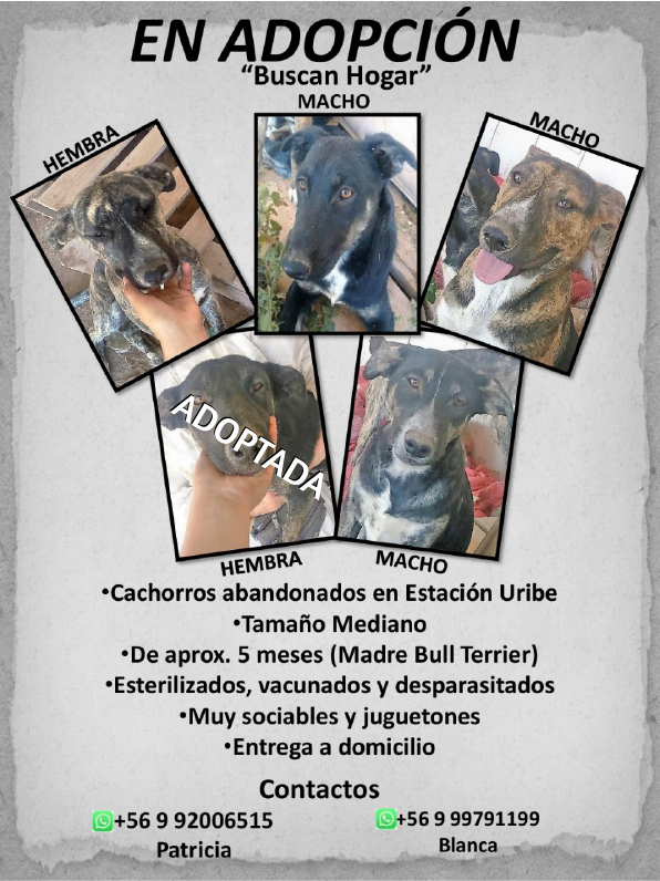 Perros encontrados abandonados en Estación Uribe, de tamaño mediano.