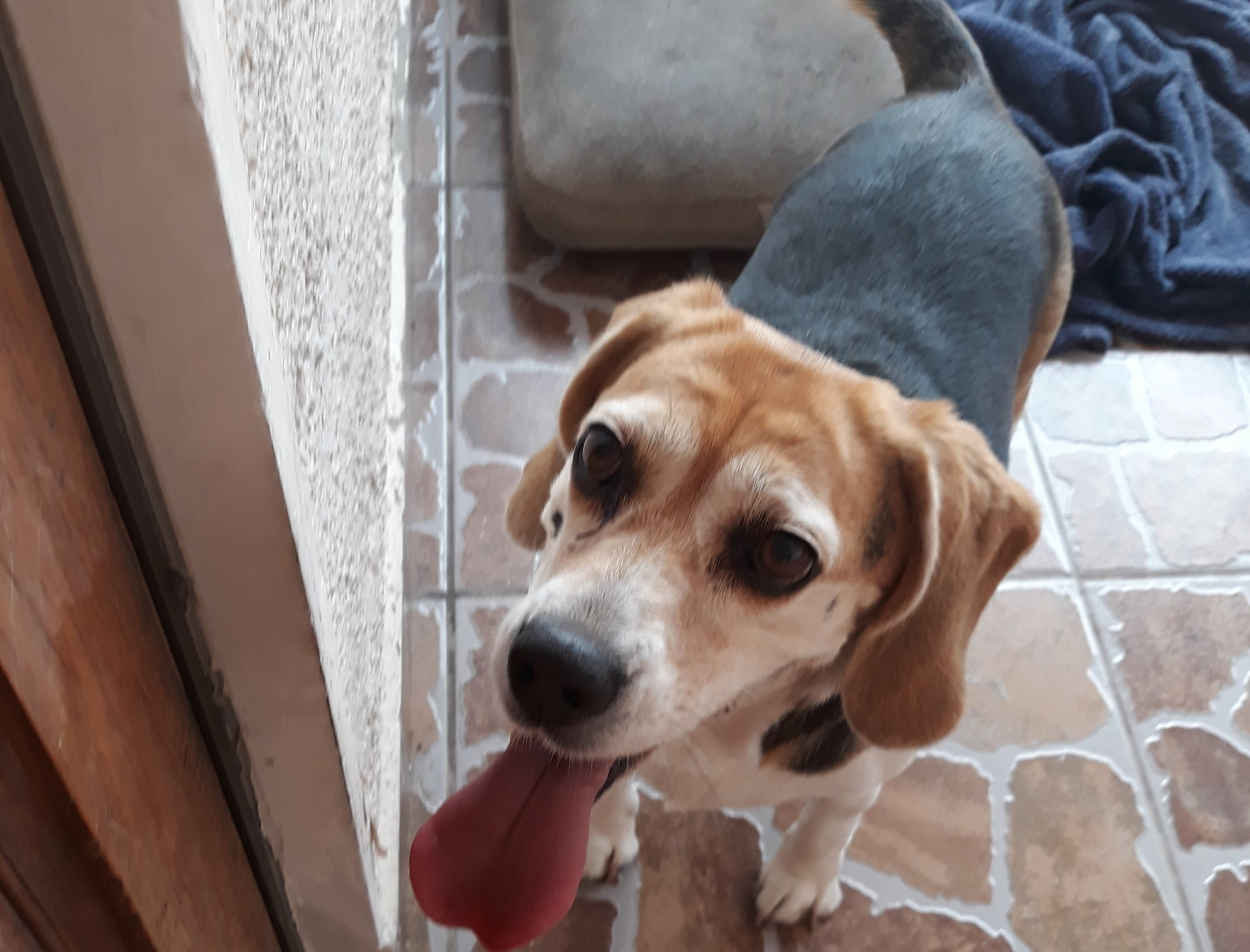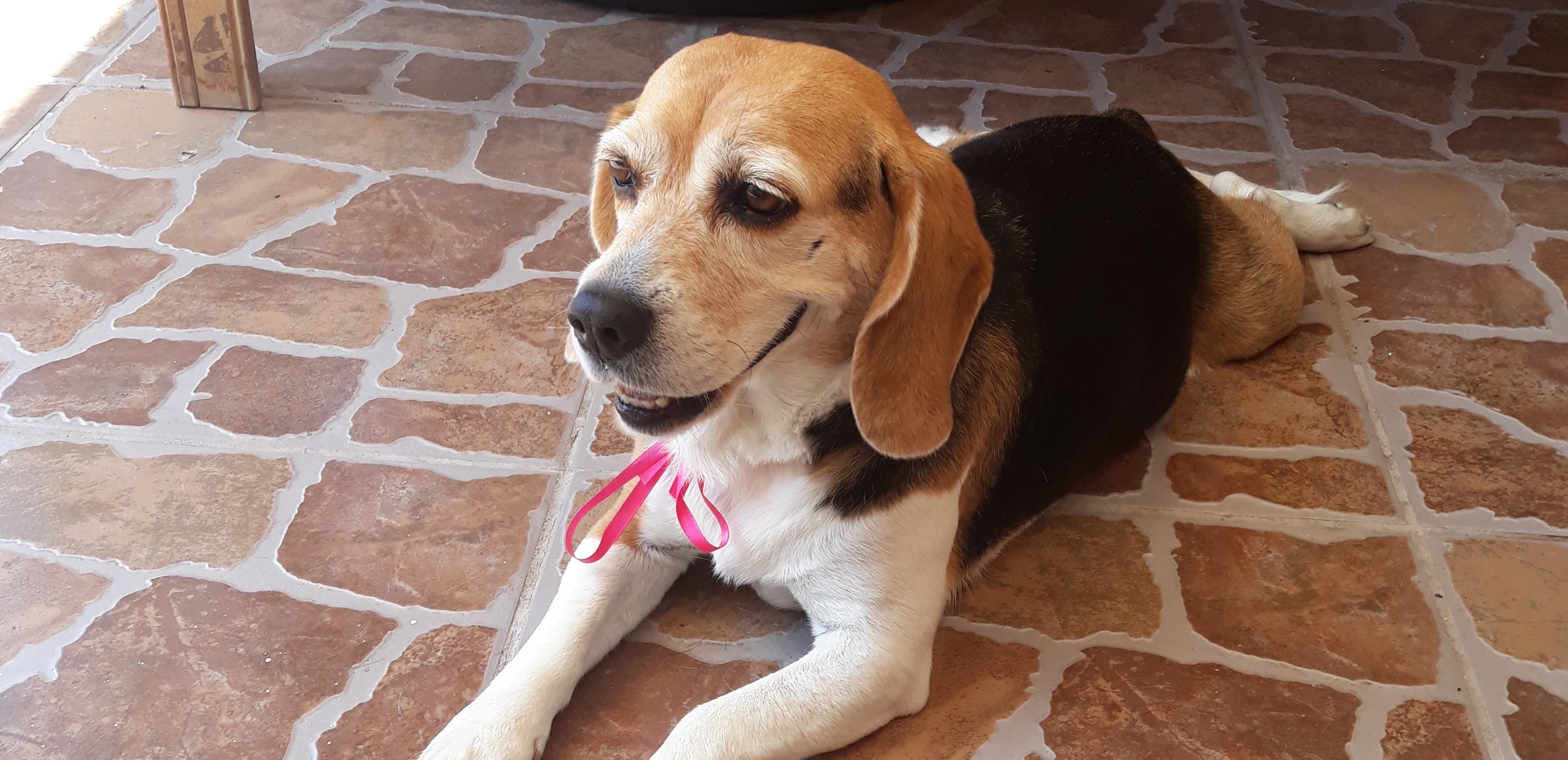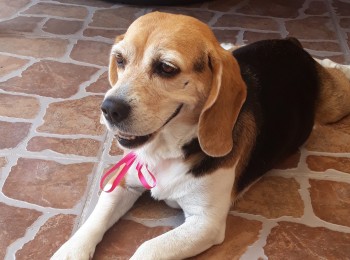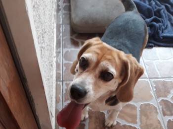 Mel, una linda Beagle de 11 años, sana e esterilizada, con problemas de reumatismo en sus cuatro patas y debido a su edad hay que cuidarla del frio, con sus vacunas al día, y siempre controlada mensualmente.