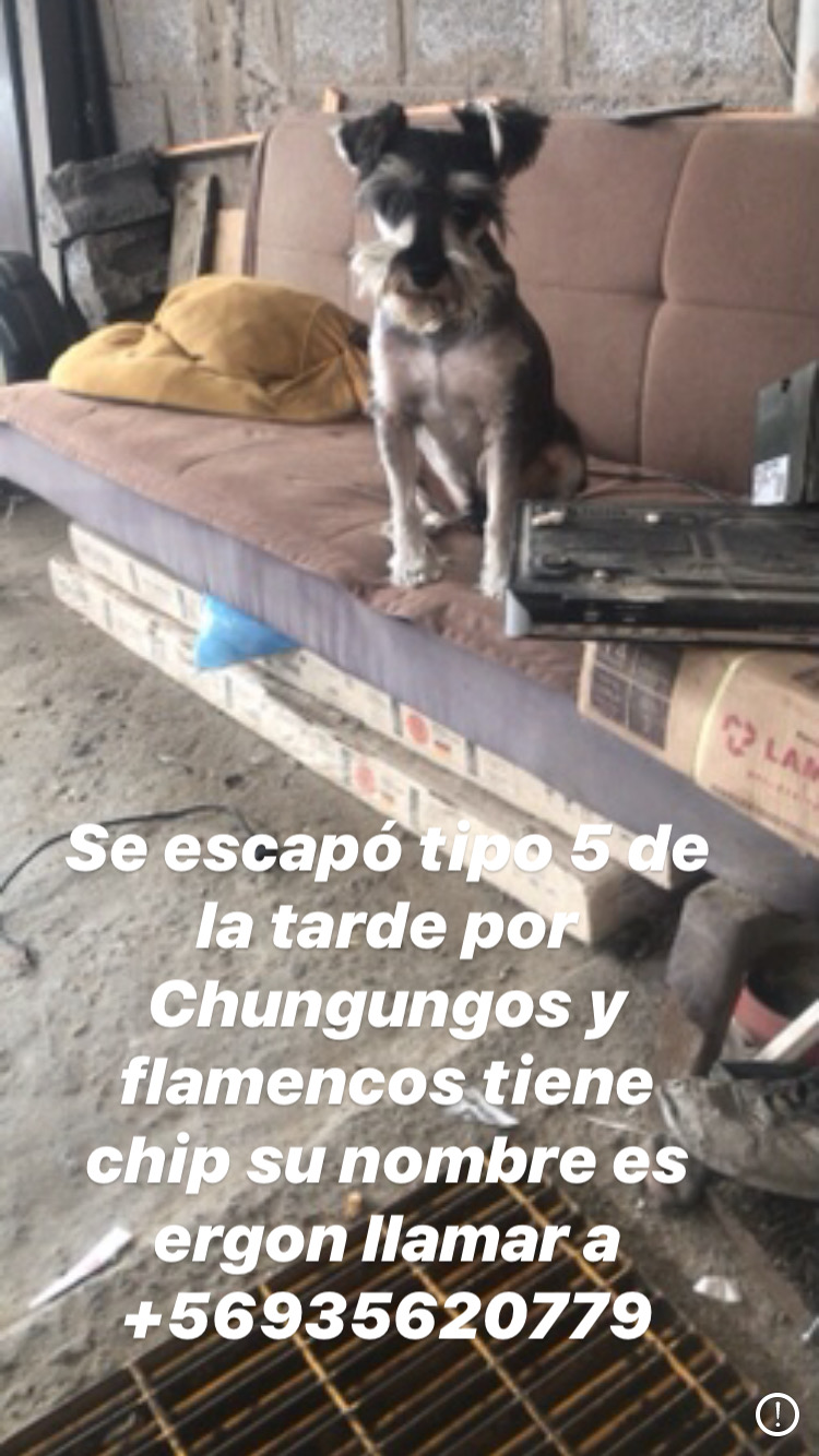 Se extravió mi perrito 09/08/2020, alrededor de las 21:00 hrs. al frente de mi domicilio, Oficina Castilla 11417, mi hijo esta muy triste. Es muy importante para nuestra familia, por favor devolverlo. Llamar al +56998650333. Sra. Marcia Castro L