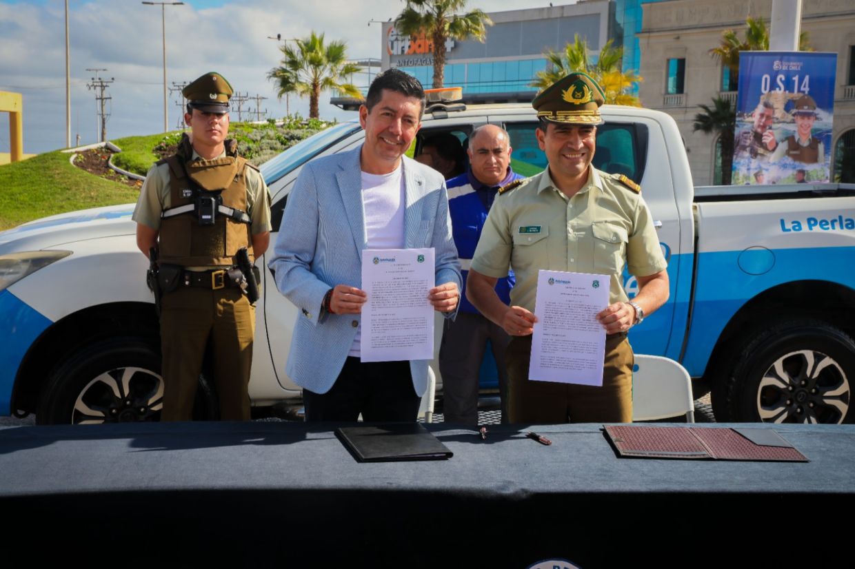 En un esfuerzo conjunto por mejorar la seguridad y calidad de vida de los habitantes de Antofagasta, la Ilustre Municipalidad de Antofagasta y Carabineros de Chile firmaron el convenio O.S14. Este acuerdo, representado por el Alcalde Jonathan Velásquez Ramírez y el General Cristian Montre Soto, jefe de la Zona de Carabineros de Antofagasta, marca un hito en la implementación de medidas preventivas contra el delito en la comuna.