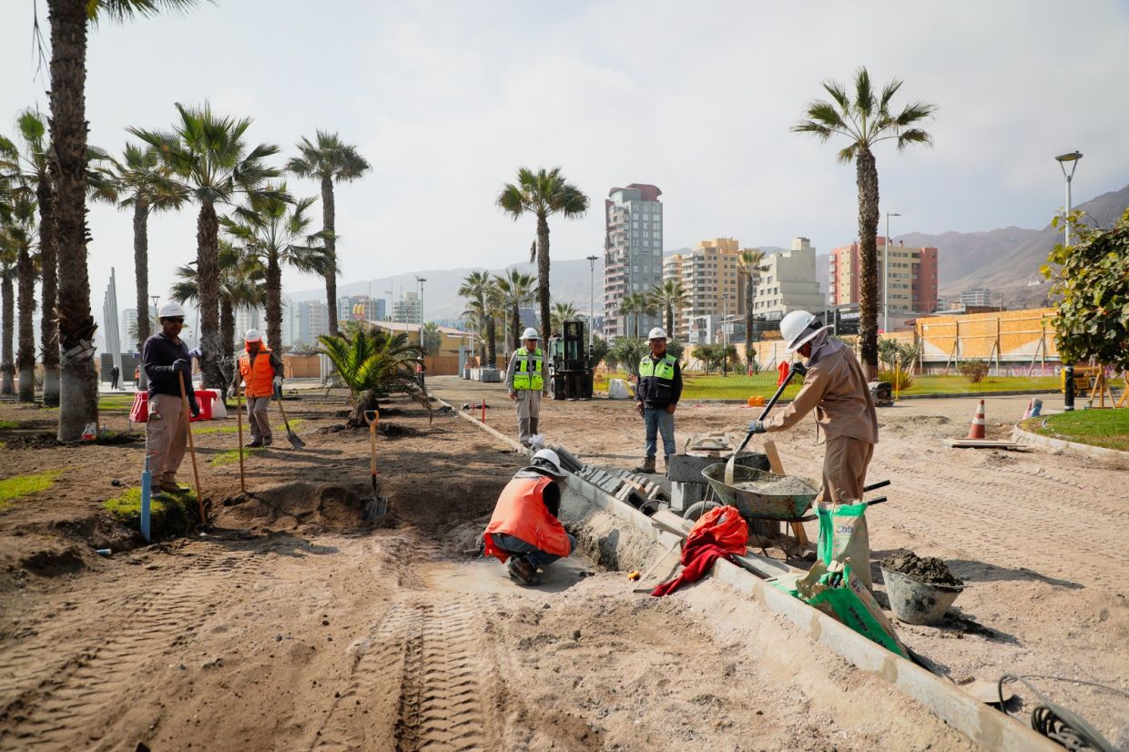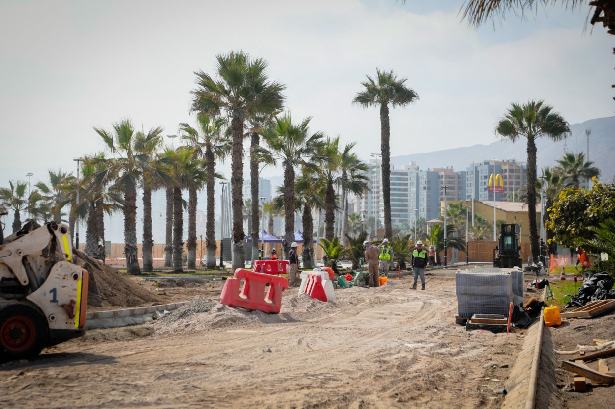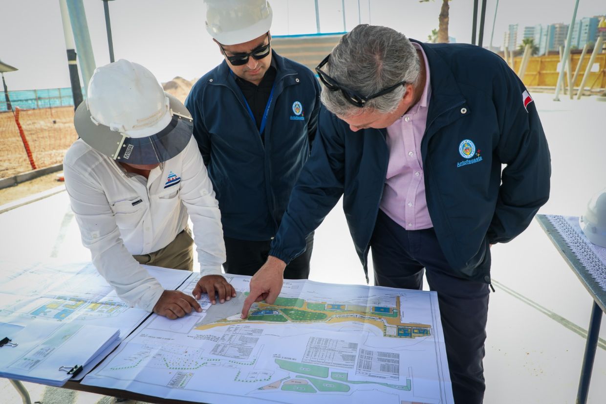 El alcalde de Antofagasta, Sacha Razmilic, quien hizo una visita técnica, destacó los avances que posibilitarán contar con mayores áreas verdes, deportivas y recreativas, sombreaderos y un sendero para la circulación peatonal.