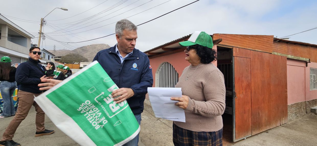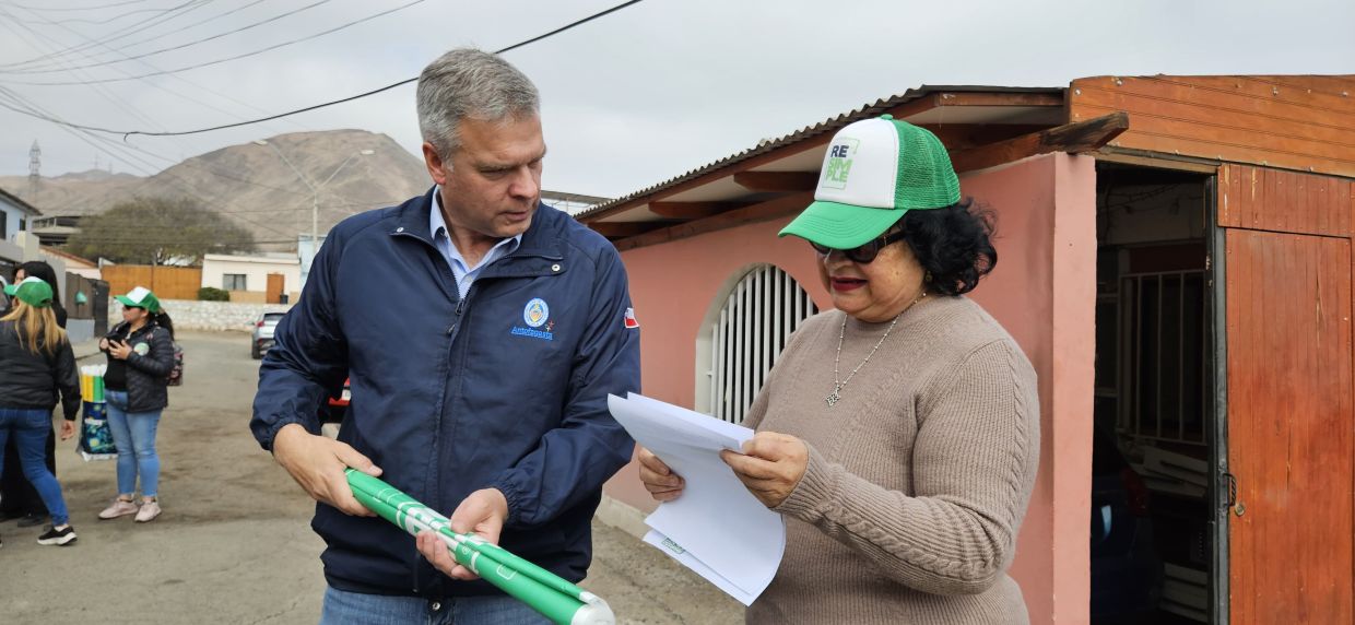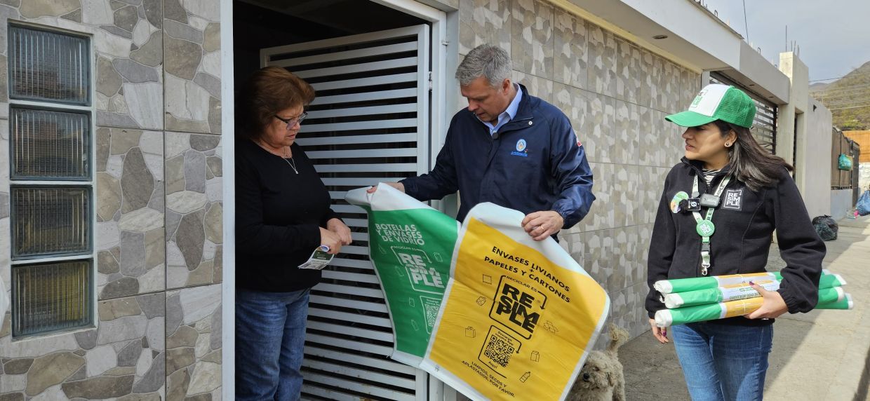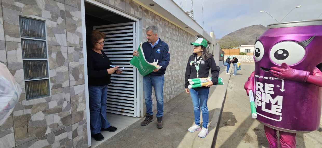 Esto forma parte de la implementación del convenio de colaboración entre la Municipalidad de Antofagasta y el sistema colectivo de gestión de envases y embalajes ReSimple. Durante 45 días equipos de Resimple realizará la entrega en toda la comuna de kits consiste en un afiche o volante informativo donde encontrará información sobre el detalle de residuos a reciclar en el hogar, cómo reciclarlos, días de recolección y las zonas abordadas para este proceso. Junto con el informativo se entrega un saco de color amarillo y un saco de color verde. El alcalde de Antofagasta, Sacha Razmilic, valoró este avance dado que "Antofagasta paga su deuda. Llevábamos años en que nuestra ciudad era la que menos reciclaba, pero ahora esto empezará a cambiar". Mientras que la líder de Asuntos Públicos de Resimple, Estefanía Carvajal, destacó el compromiso y rol de facilitador de la Municipalidad de Antofagasta para que la capital regional empiece a reciclar y dar cumplimiento de la Ley REP. | La vecina Griselda Cuello que recibió un kit en su hogar, contó que en el sector de Ferro Baquedano reciclaban, pero ahora este sistema permite organizarse de mejor forma y facilita el hecho de que el retiro sea desde el hogar una vez a la semana.