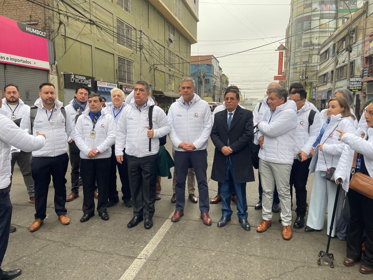 También asisten a esta actividad, José Pakomio, presidente de la Cámara Nacional de Comercio, Servicios y Turismo de Chile; Adolfo Numi Velasco, presidente de la Asociación del barrio Meiggs, Dafne Ulloa, gerenta general de la Asociación Gremial de Turismo y Comercio del Centro Histórico de Santiago (Tuchs), el director ejecutivo de Paz Ciudadana, Daniel Johnson, además de concejales de las comunas participantes. La agenda consideró una visita en terreno para conocer detalles del funcionamiento, medidas y despliegue de seguridad que considera tecnología y equipos humanos definidos estratégica y territorialmente. Además de aspectos de cómo están organizados los comerciantes, las conexiones viales y de transporte público, entre otros aspectos. | Junto a ello participaron en exposiciones de la Universidad de Piura sobre el Smart City Gamarra y del alcalde de La Victoria, Rubén Cano, acerca de las acciones municipales en este espacio clave en la economía y turismo local.