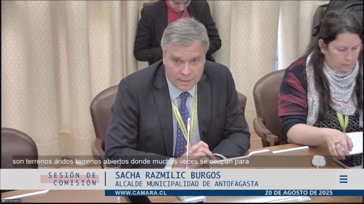 Lo anterior, en el marco de la sesión donde fue abordado el proyecto de ley que aumenta sanciones aplicables a la incineración de basura y promueve la educación ambiental en manejo de residuos, presentado el pasado 6 de mayo de 2025, iniciativa impulsada por el diputado de la región y presidente de esta comisión, Jaime Araya. El alcalde de Antofagasta, Sacha Razmilic, expuso ante la Comisión que "a mí como autoridad me ha tocado, en el fondo ser la respuesta del Estado ante esto. Por un lado, está Bomberos que acude, pero tiene muchas otras responsabilidades". Agregando que tanto la "Delegación Presidencial no tiene respuesta operativa para ello, el Gobierno Regional menos, por lo tanto el municipio debe responder con sus áreas de Operaciones, Aseo y Gestión del Riesgo de Desastres". Sacha Razmilic pidió apoyo a este proyecto de ley, dado que si bien hay un despliegue y diversos tipos de respuestas, se carece de facultades para prevenirlos o perseguir legalmente si sorprenden a alguien, por los vacíos legales existentes. "No hay herramienta legal para perseguir a estas personas", sentenció el alcalde de la capital regional. | La concejala Karina Guzmán también asistió a la sesión, quien explicó la situación territorial, describiendo que hay 40 mil vecinos en las cercanías, establecimientos educacionales, y en un sector con una proyección de 9 mil viviendas sociales.