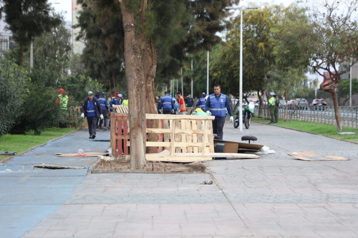 Un total de siete rucos fueron retirados, dos veces en menos de 24 horas, por personal de la Municipalidad de Antofagasta con el apoyo de Carabineros desde el bandejón central ubicado frente al sector del mall.