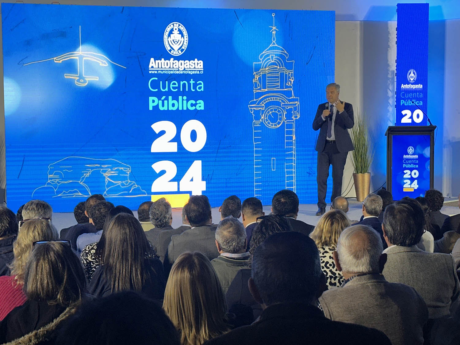 El alcalde de Antofagasta, Sacha Razmilic Burgos, presentó la cuenta pública municipal 2024 con una mirada 2025, marcada en materia de seguridad, mejora de espacios públicos y proyectos que buscan mejorar la calidad de vida de los vecinos de la ciudad, inversiones proyectadas en $ 21.660 millones.