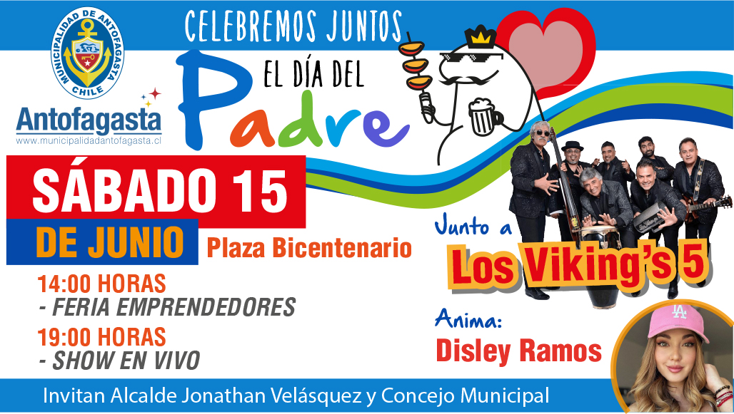 La Municipalidad de Antofagasta, a través de la Dirección de Desarrollo Comunitario, realizará un mega evento este sábado 15 de junio en el sector norte de la ciudad, para celebrar a todos los papás de la comuna en su día.
